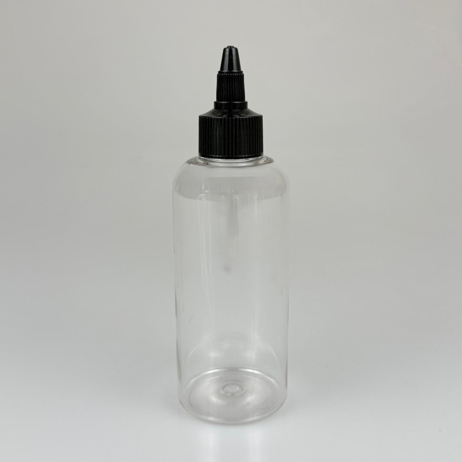 YAĞ, SOS, ACI SOS, SİRKE, SRIRACHA, MÜREKKEP, TUTKAL AKITICI VB BOŞ ŞİŞELERİ - SİYAH SİVRİ TWİST AKITICI KAPAK + 200 ML OVAL PET PLASTİK ŞİŞE TAKIM