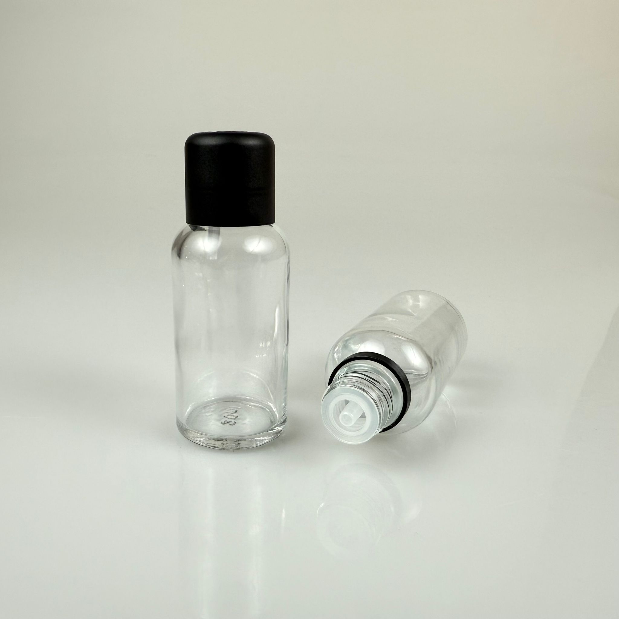 30 CC ŞEFFAF İÇTEN DAMLALIKLI - SİYAH KİLİT KAPAKLI CAM ŞİŞE - 30 ML ŞEFFAF STANDART İÇTEN DAMLALIKLI CAM ŞİŞE