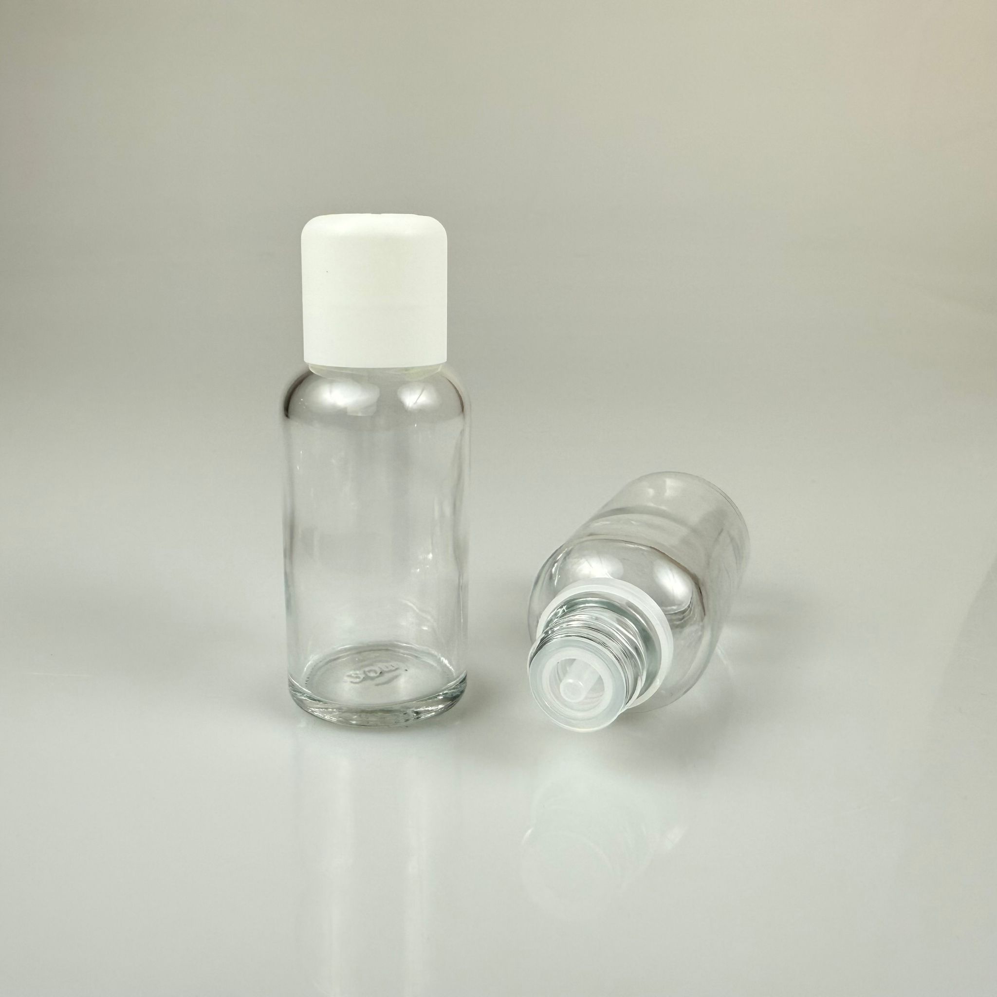 30 CC ŞEFFAF İÇTEN DAMLALIKLI - BEYAZ KİLİT KAPAKLI CAM ŞİŞE - 30 ML ŞEFFAF STANDART İÇTEN DAMLALIKLI CAM ŞİŞE
