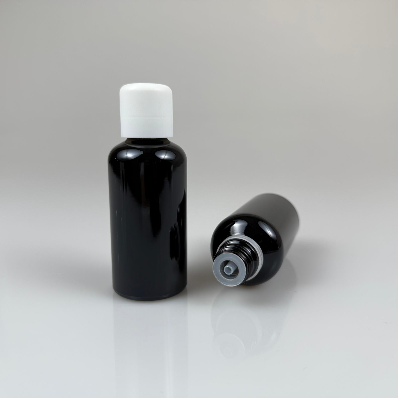 50 CC ORJİNAL SİYAH CAM ŞİŞE + İÇTEN DAMLALIKLI ÇOCUK KİLİTLİ BEYAZ KAPAK - SİYAH 50 ML KİLİT KAPAKLI DAMLATMALI ŞİŞE