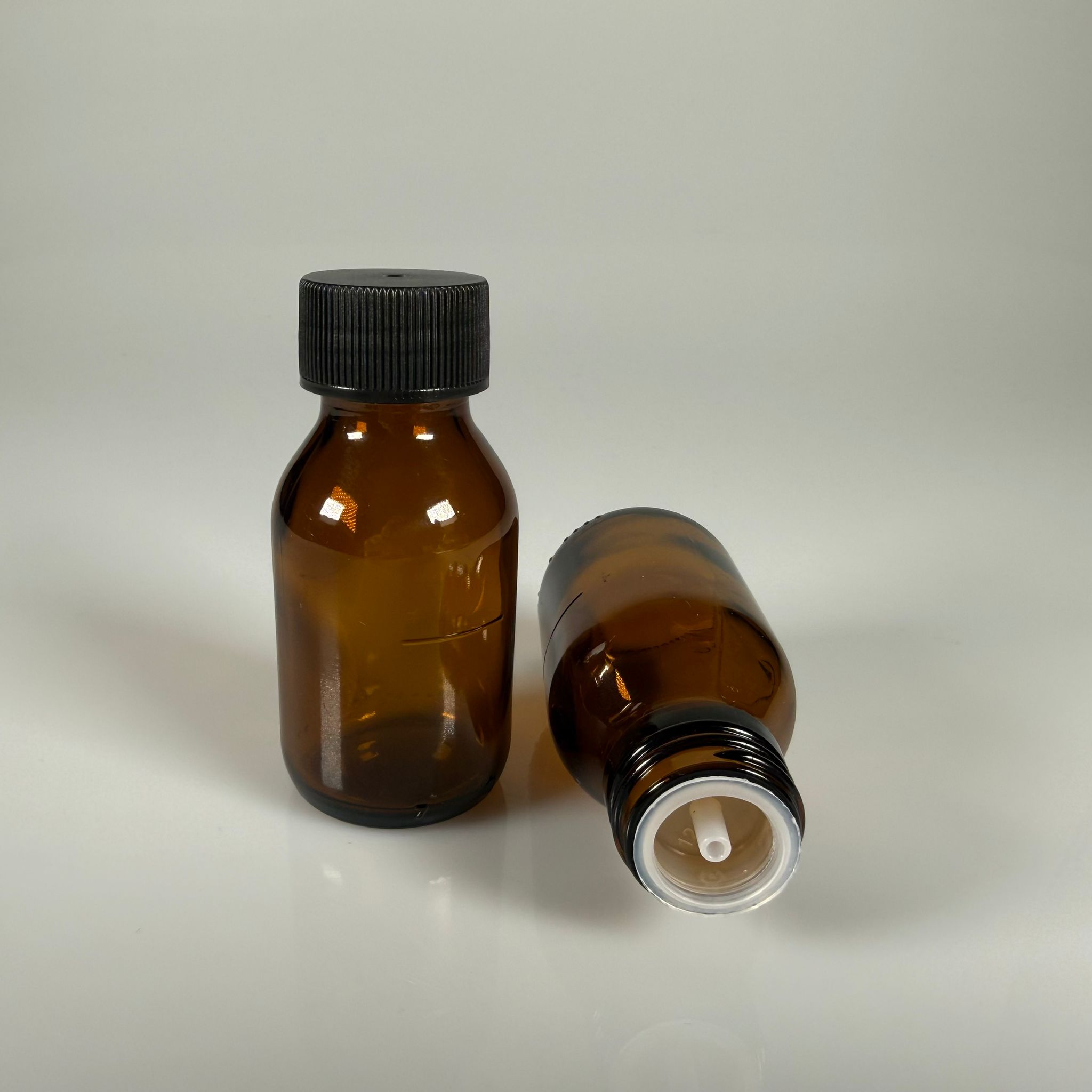 50 ML DOLUMU KOLAY, GENİŞ AĞIZLI İÇTEN DAMLALIKLI ŞİŞE (25 MM AĞIZ) - 50 CC SİYAH CONTALI KAPAKLI İÇTEN DAMLALIKLI CAM ECZA ŞİŞESİ - AMBER KAHVERENGİ