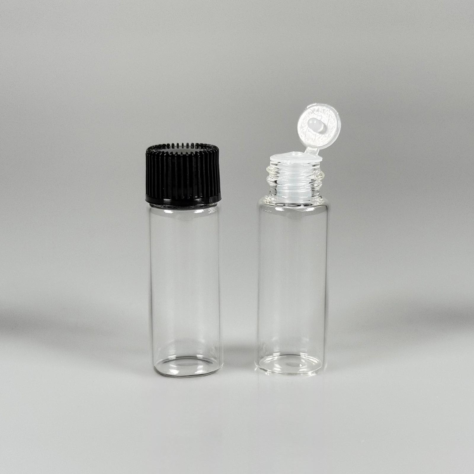 5 CC ŞEFFAF İNCE CAM ŞİŞE - SİYAH KAPAKLI + İÇTEN DAMLALIKLI - 5 ML CAM ŞİŞE