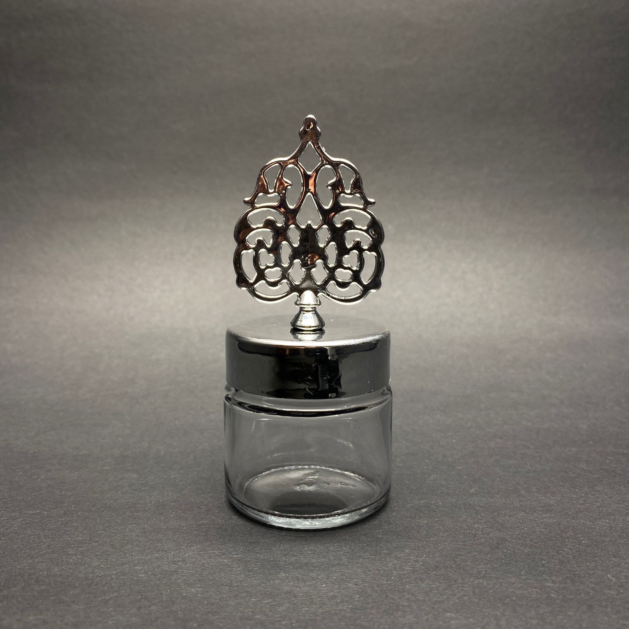 41 CC SİLİNDİR KAVANOZ - GÜMÜŞ KAPLAMALI GÜNEŞ TEPELİKLİ KUBBELİ TUĞRALI KAPAK - 41 ML CAM KAVANOZ