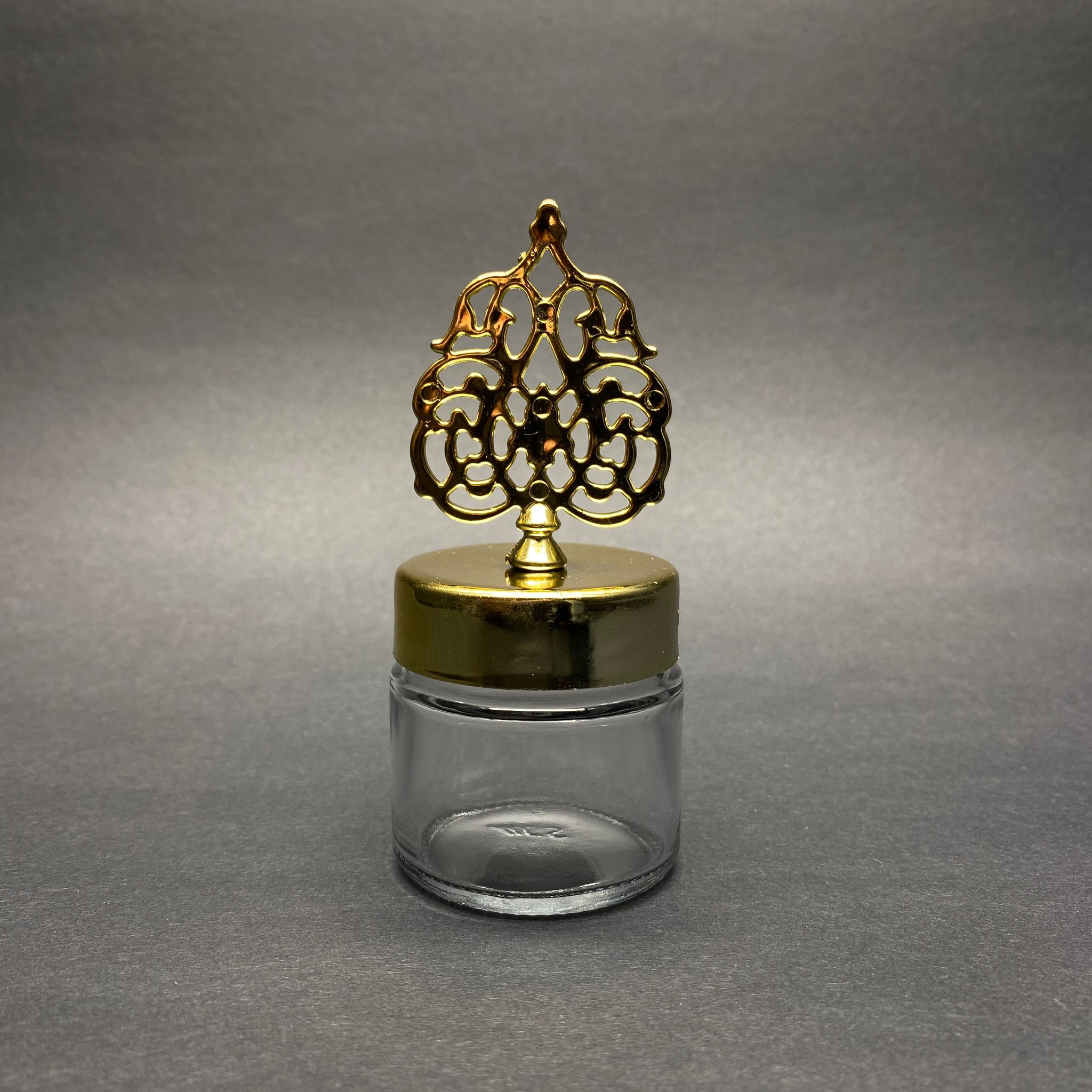 41 CC SİLİNDİR KAVANOZ - GOLD KAPLAMALI GÜNEŞ TEPELİKLİ KUBBELİ TUĞRALI KAPAK - 41 ML CAM KAVANOZ
