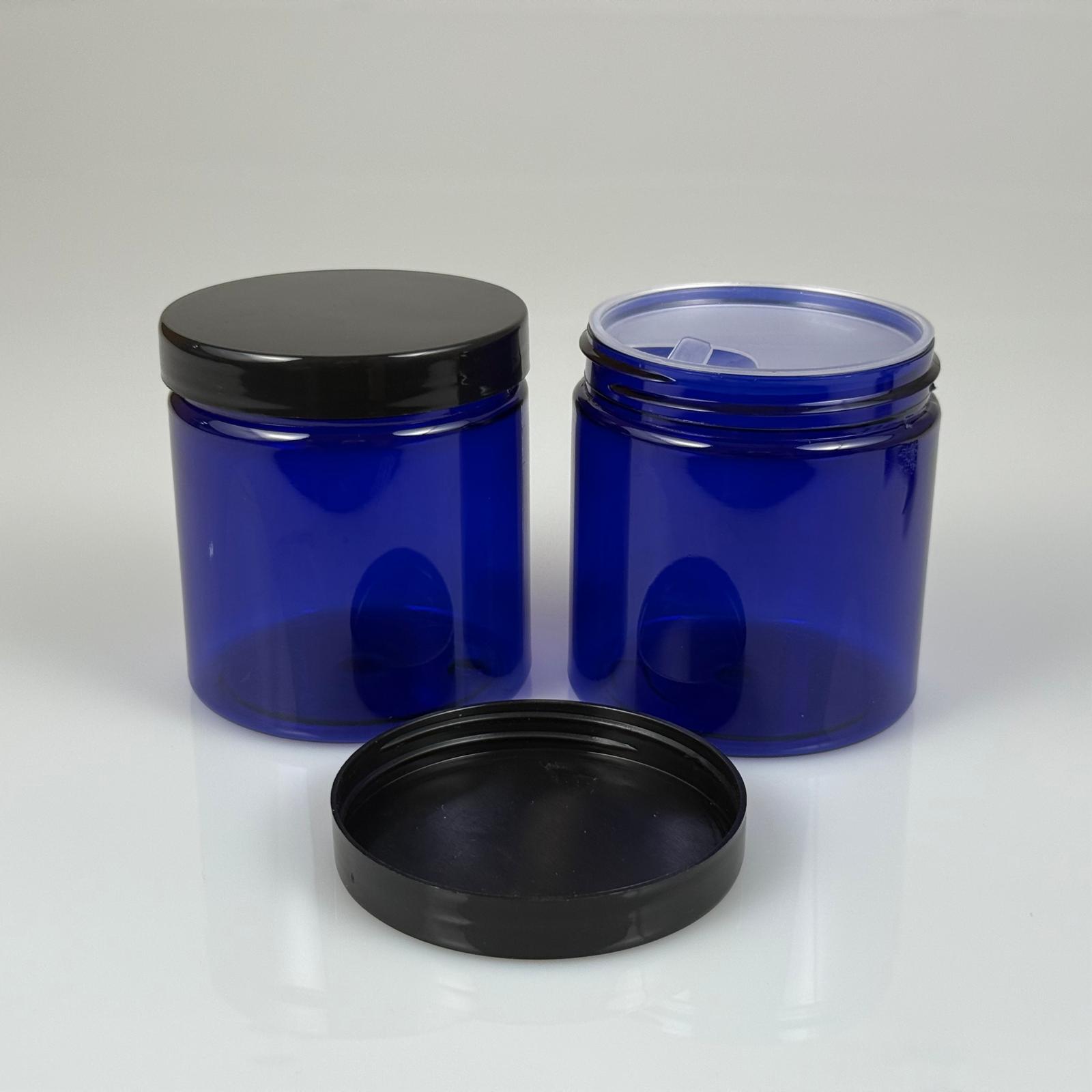 250 ML SERT PET KAVANOZ + SİYAH PLASTİK KAPAK + İÇ TIPA - 250 CC KALIN MAVİ PLASTİK KAVANOZ SİYAH PLASTİK KAPAKLI İÇ TIPALI TAKIM - KREM KAVANOZLARI