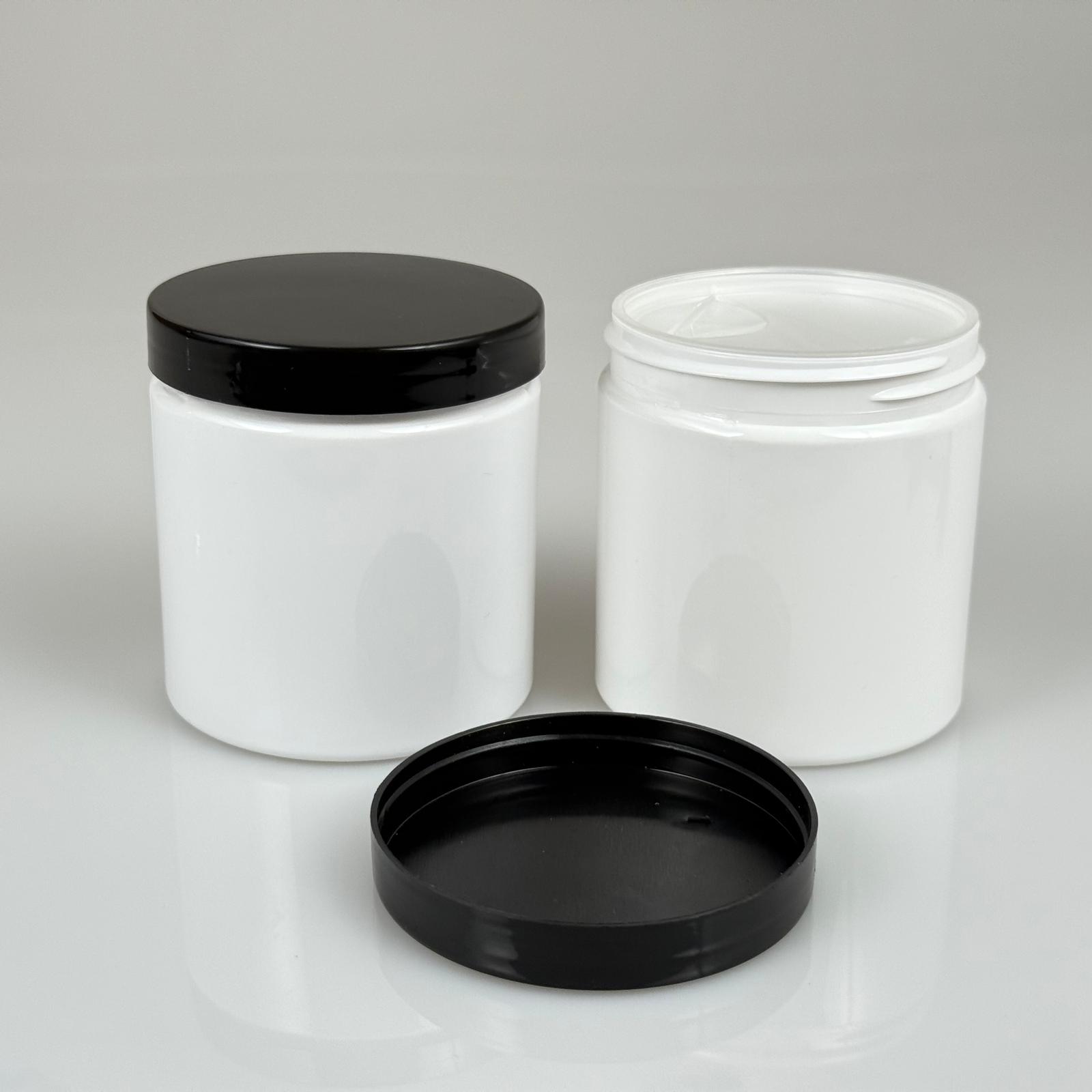 250 CC BEYAZ SERT PLASTİK KAVANOZ - SİYAH PLASTİK KAPAKLI - 250 ML PLASTİK KAPAKLI PLASTİK KAVANOZ - KOZMETİK KAVANOZ, GIDA KAVANOZU VE KREM KAVANOZU OLARAK KULLANABİLİRSİNİZ