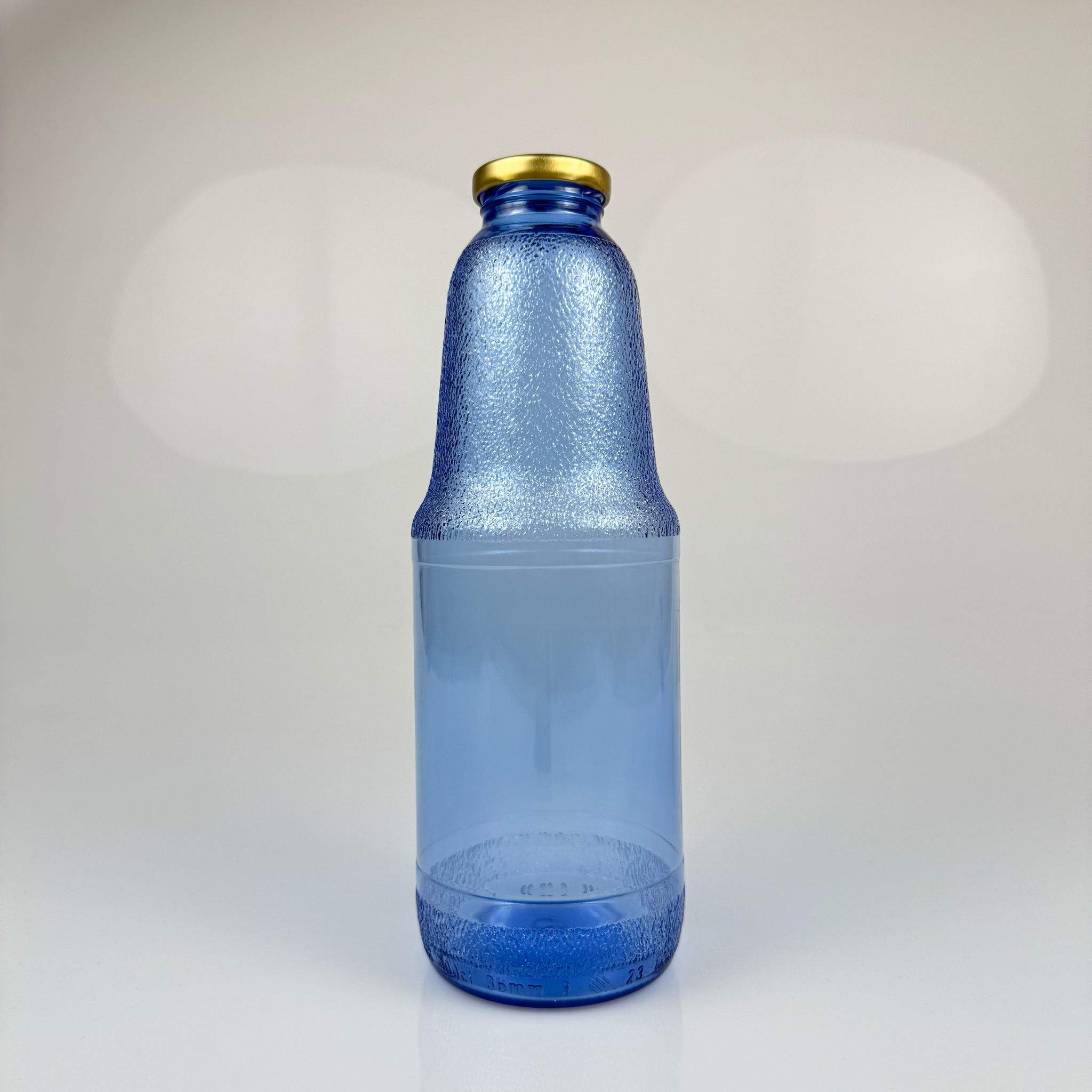 1000 CC MAVİ CAM MEYVE SUYU ŞİŞESİ - GOLD METAL KAPAKLI (KONSERVEYE UYGUN) - 1 LİTRE ORJİNAL MAVİ CAM ŞİŞE