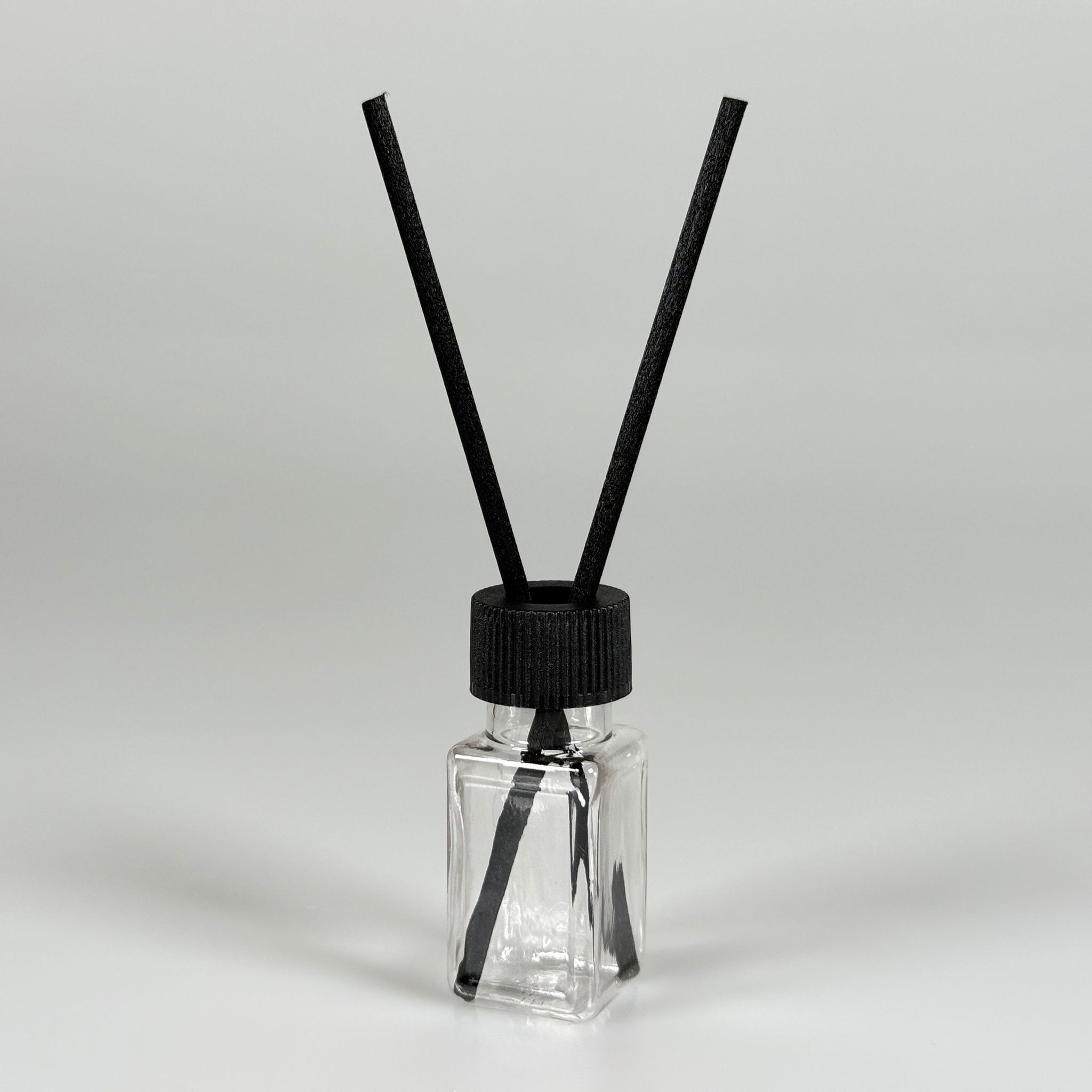 PLASTİK PET DİFÜZÖR ODA KOKUSU BAMBU ŞİŞESİ - 10 ML KARE - ŞİŞE + SİYAH METAL KAPAK + TIPA + 24 CM FİBER ÇUBUK