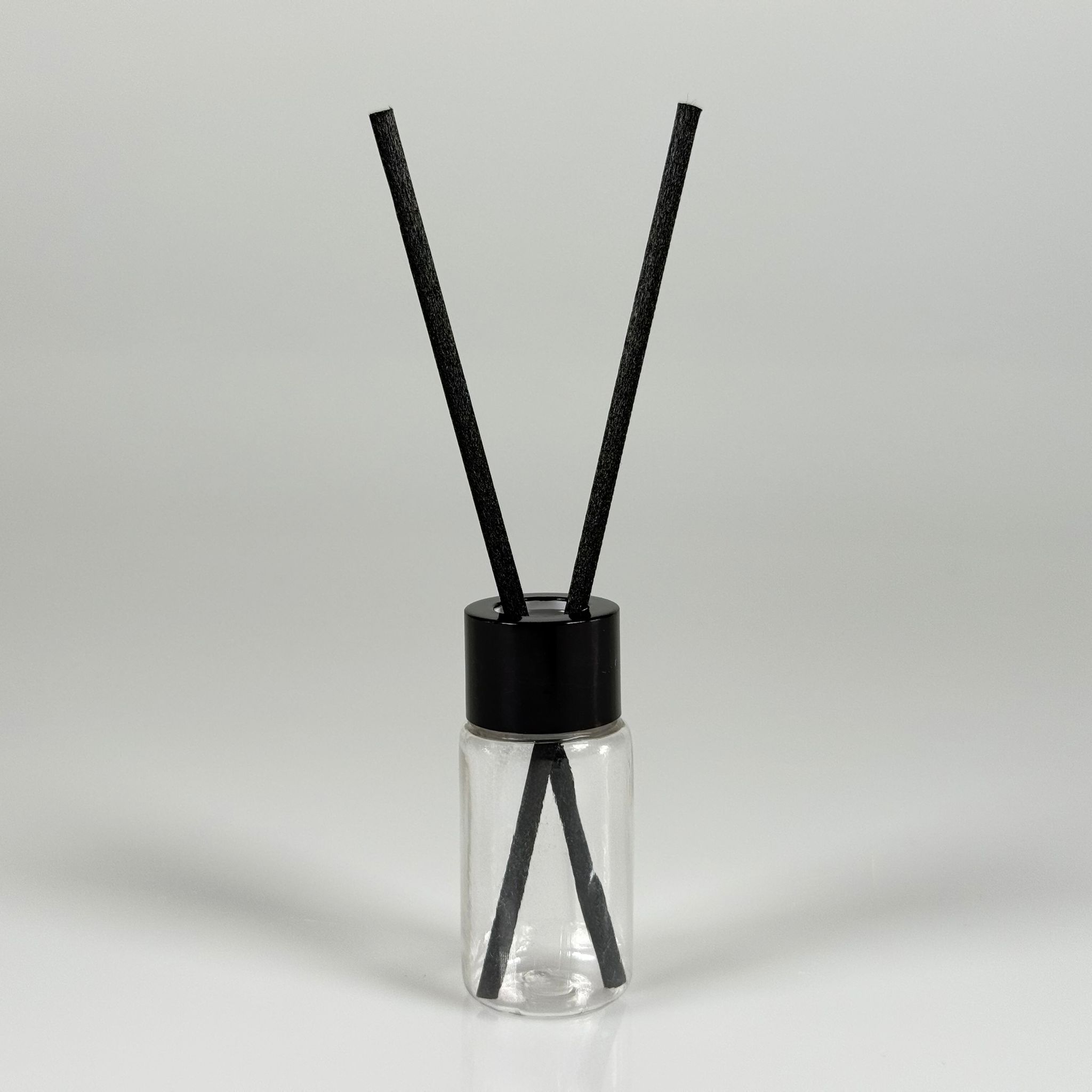 PLASTİK PET DİFÜZÖR ODA KOKUSU BAMBU ŞİŞESİ - 10 ML SİLİNDİR - ŞİŞE + SİYAH METAL KAPAK + TIPA + 24 CM FİBER ÇUBUK