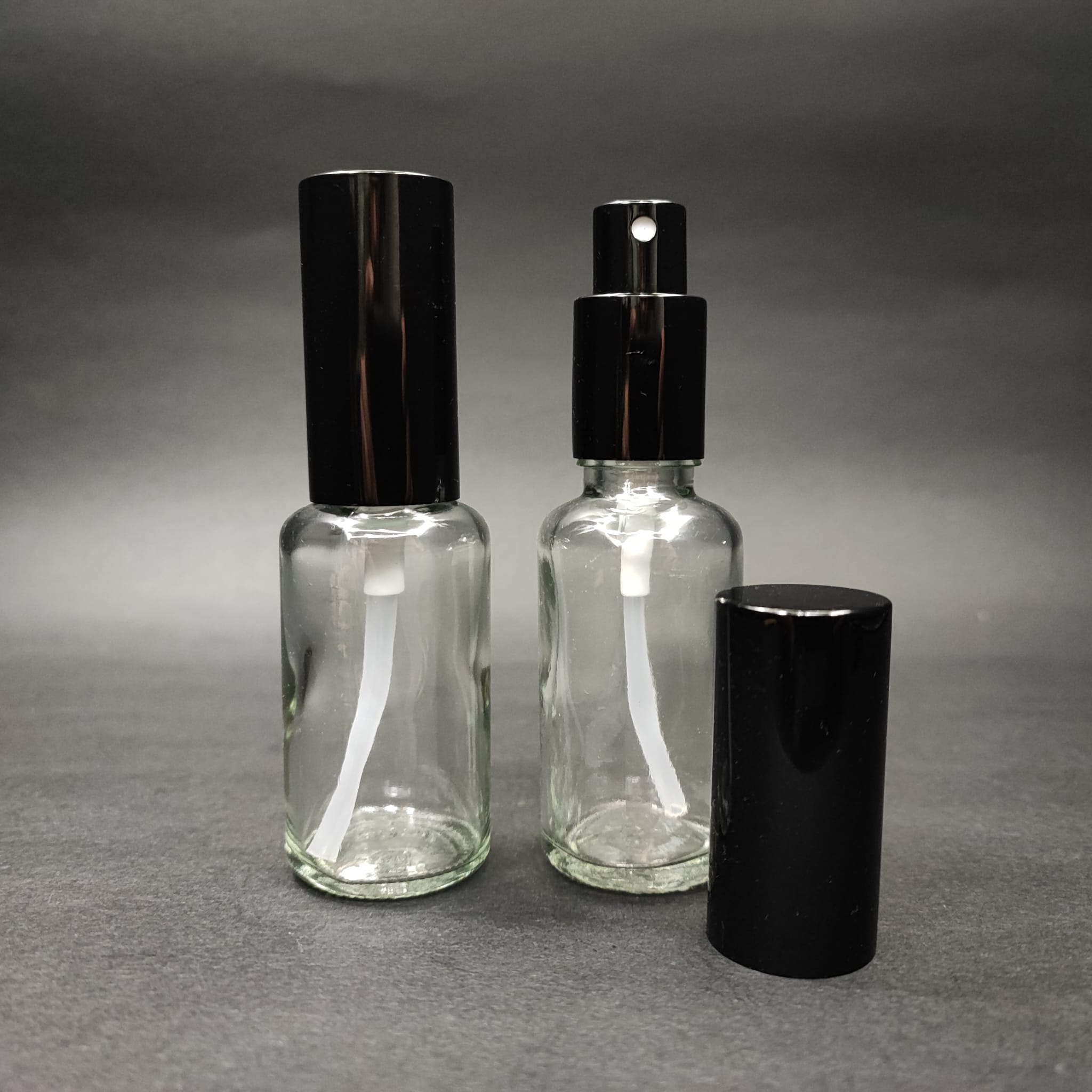 30 ML LÜKS VİDALI VALF ÇEVİRME PARFÜM ŞİŞELERİ - 30 CC ŞEFFAF CAM ŞİŞE - SİYAH METAL SPREYLİ KAPAKLI SET