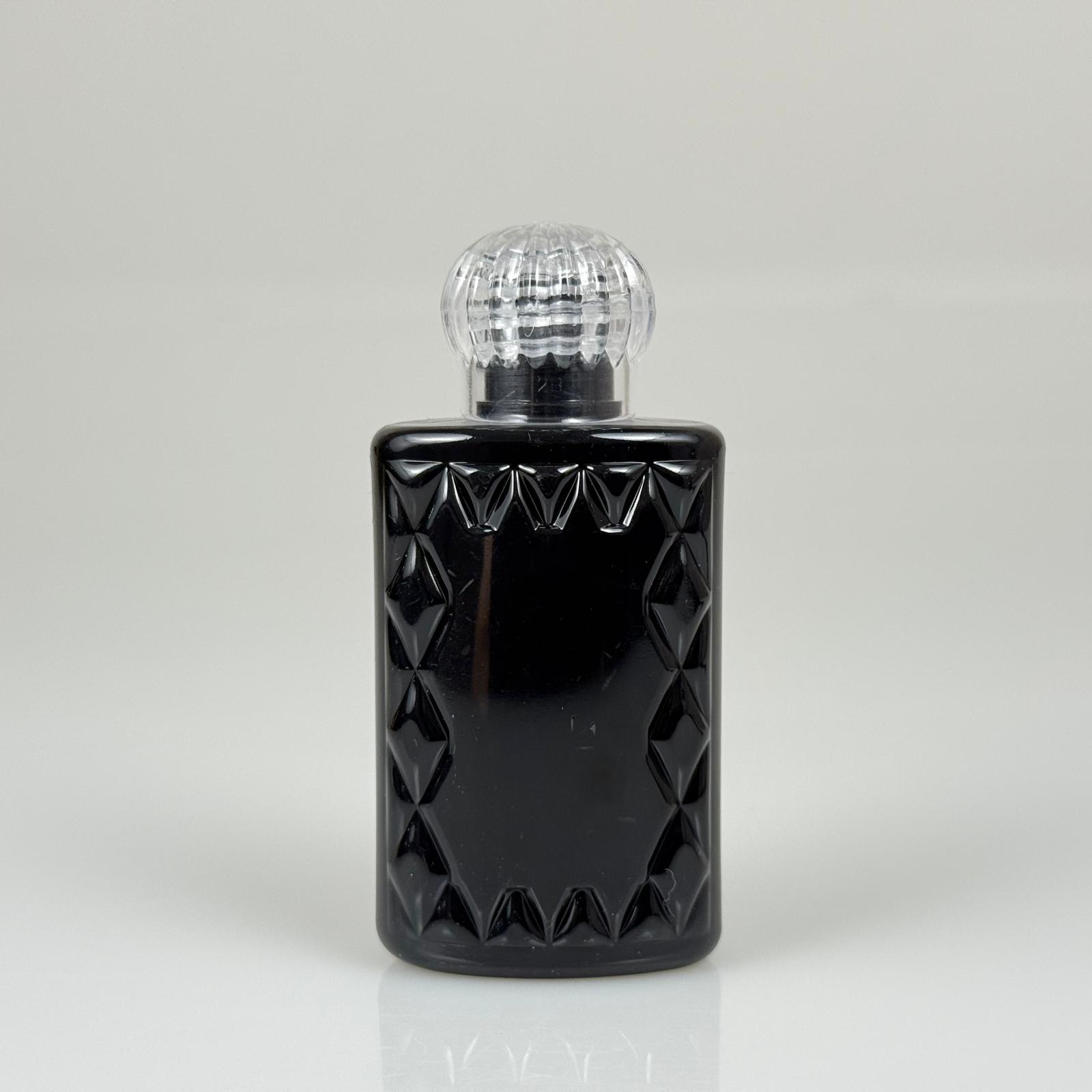 50 CC SİYAH PLASTİK KOLONYA ŞİŞESİ - KRİSTAL KAPAKLI TIPALI - 50 ML YASSI PET DESENLİ KOLONYA ŞİŞESİ