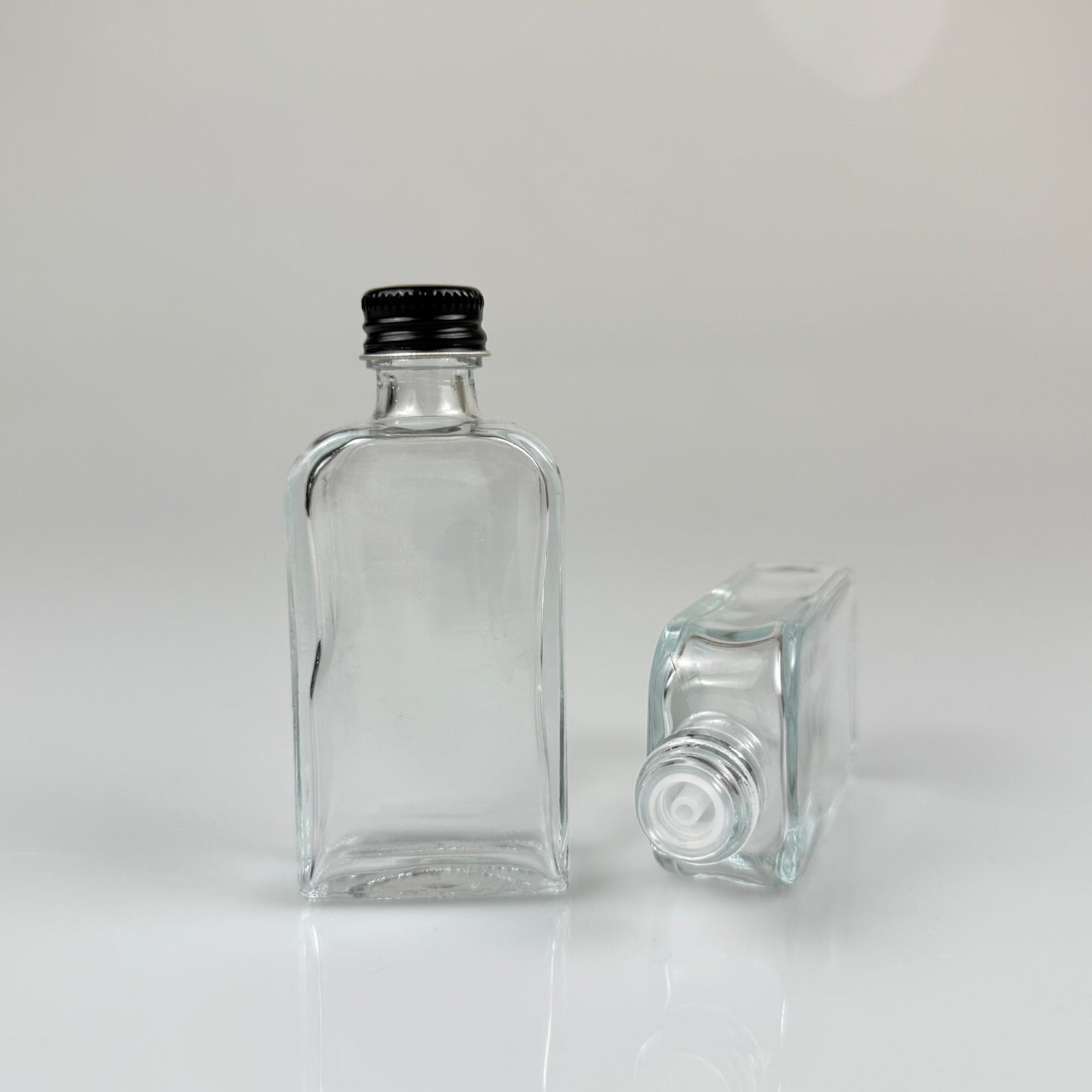 50 CC BOĞAZLI YASSI CAM ŞİŞE - SİYAH METAL KAPAKLI KOLONYA TIPALI - 50 ML PRESTİJLİ ŞİŞE