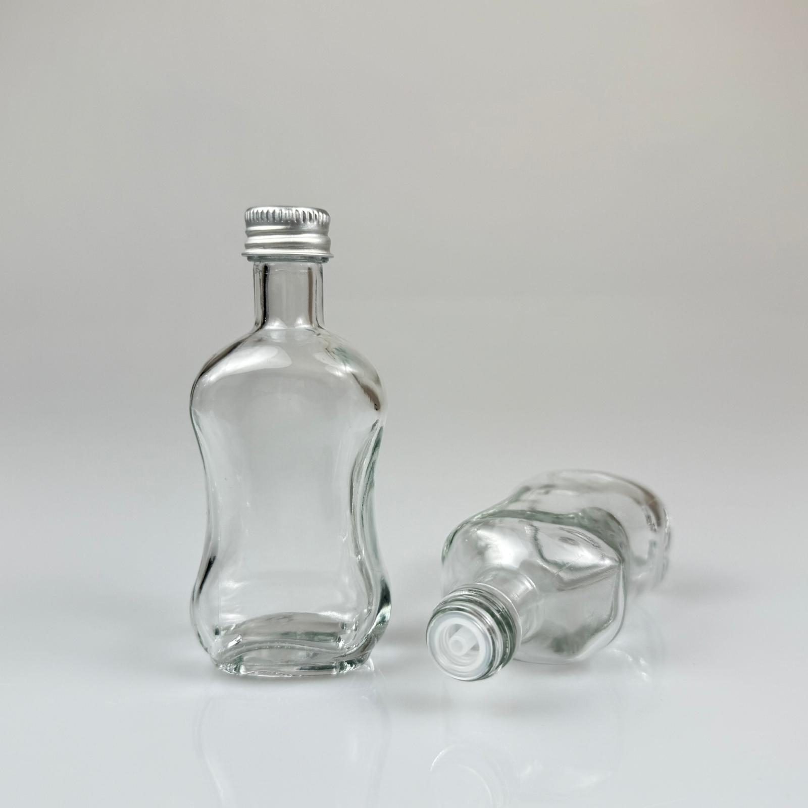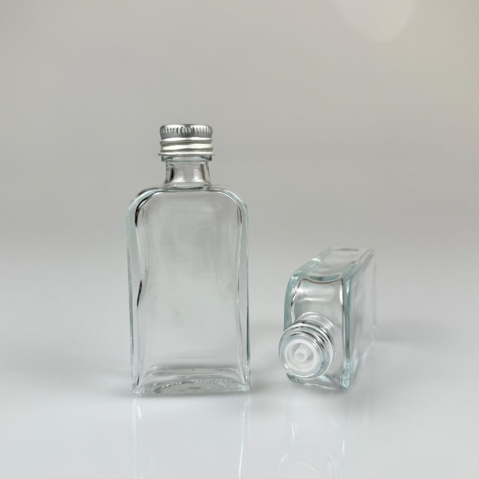 50 CC BOĞAZLI YASSI CAM ŞİŞE - GÜMÜŞ METAL KAPAKLI KOLONYA TIPALI - 50 ML PRESTİJLİ ŞİŞE