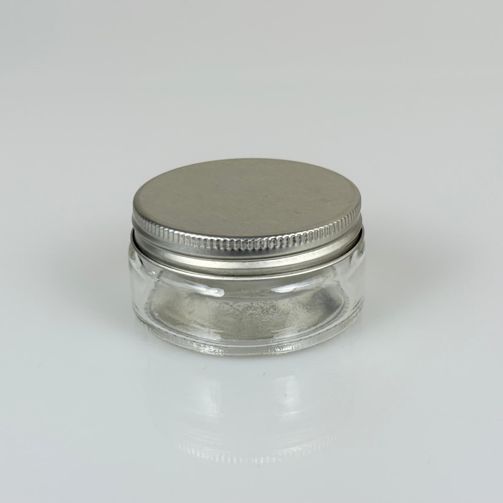 50 CC CAM KREM KAVANOZU - GÜMÜŞ METAL KAPAKLI - 50 ML CAM YAYVAN BASIK KREM KAVANOZU - İTHAL