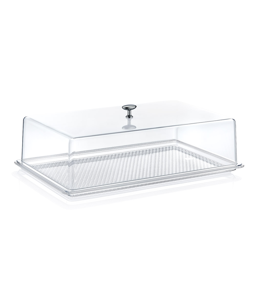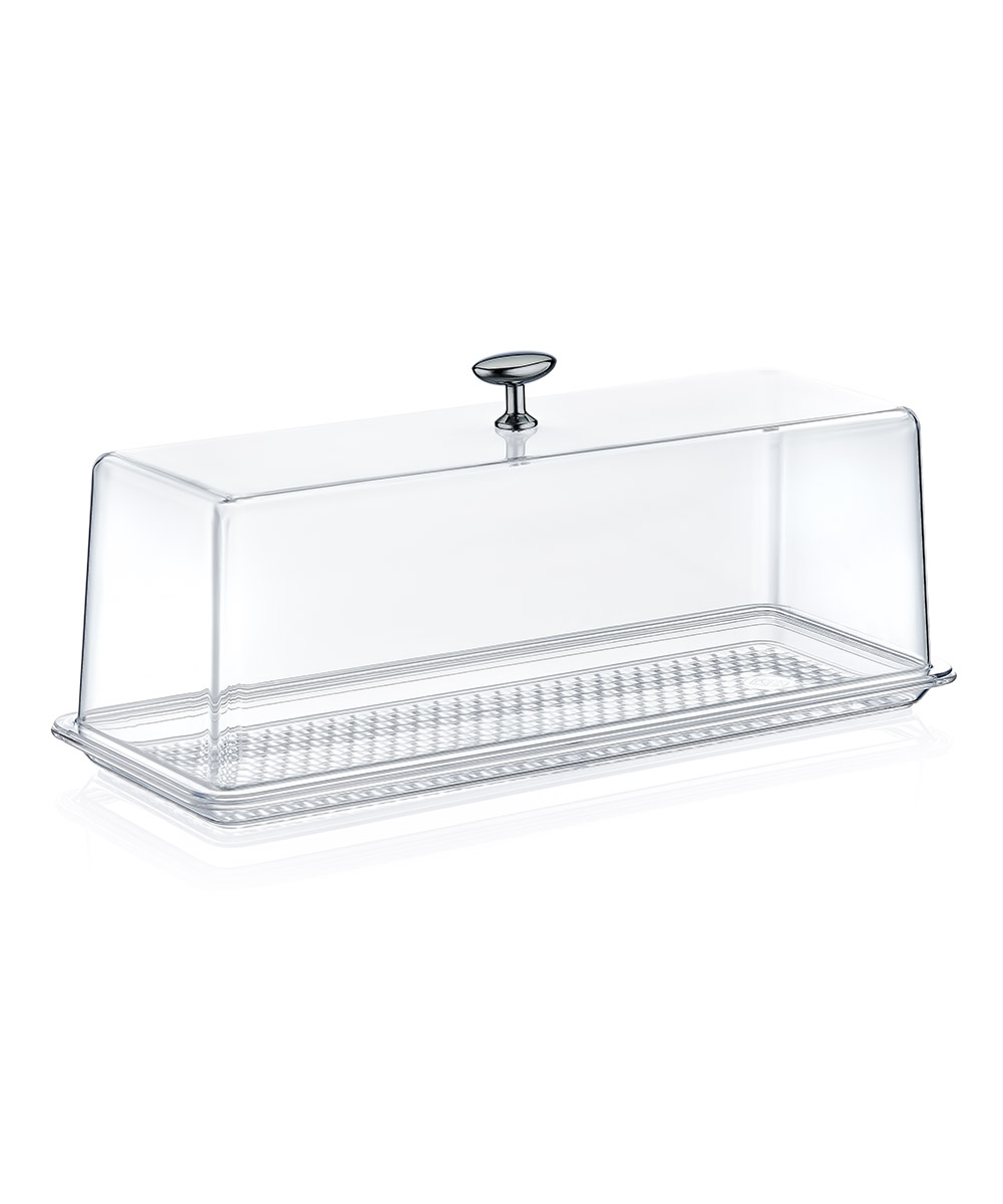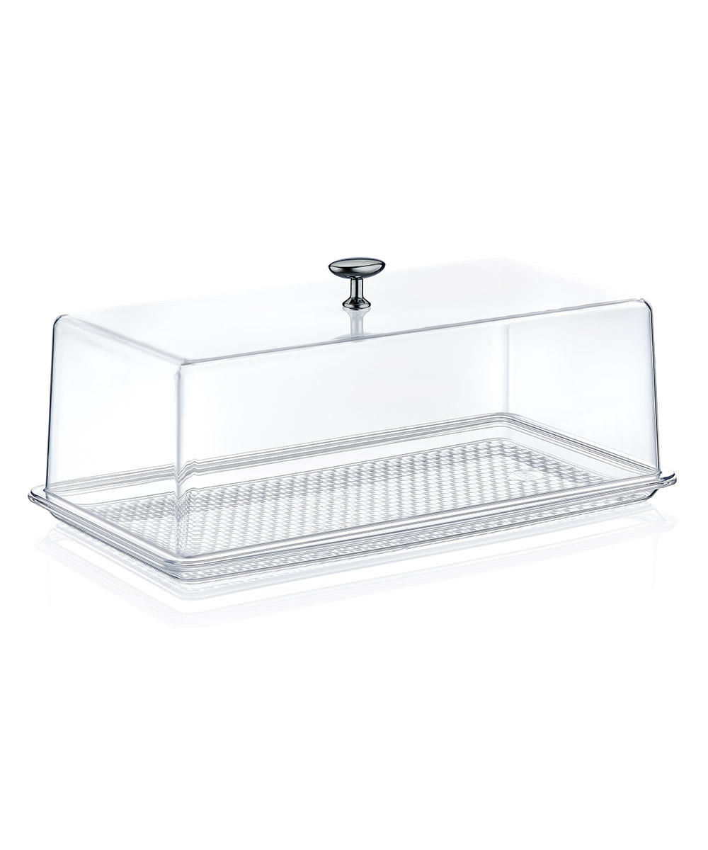 5 NO DİKDÖRTGEN GIDA KABI - MİKA LOKUMLUK - FANUS KAPAKLI (ŞARKÜTERİ, FIRIN, PASTANELERDE VS KULLANILIR) 50X31 CM EN BOY 20 CM YÜKSEKLİK (HACMİ 9500 CC)