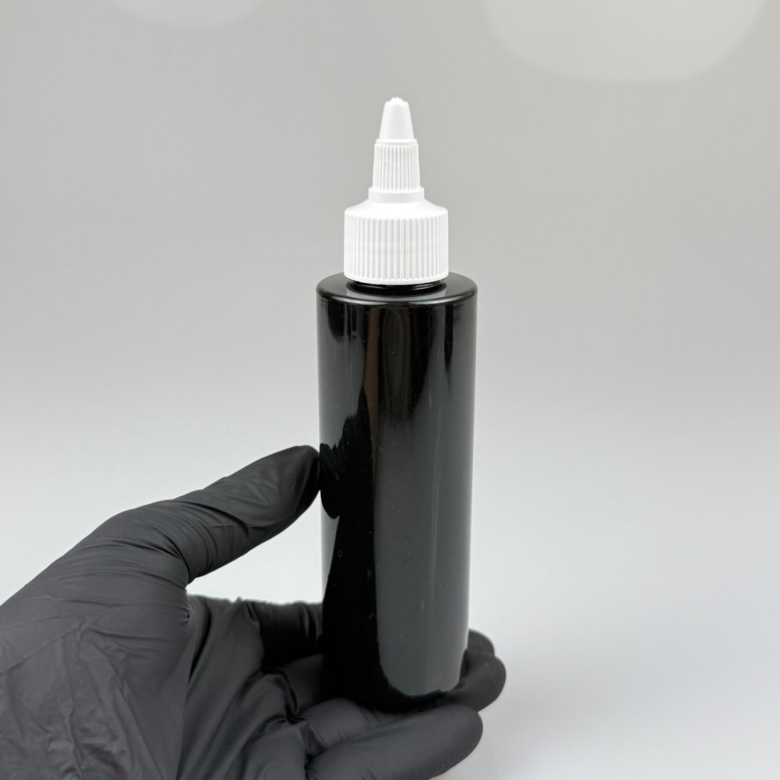 YAĞ, SOS, ACI SOS, SİRKE, SRIRACHA, MÜREKKEP, TUTKAL AKITICI VB BOŞ ŞİŞELERİ - BEYAZ SİVRİ TWİST AKITICI KAPAK + 150 ML SİYAH SERT PET PLASTİK ŞİŞE TAKIM