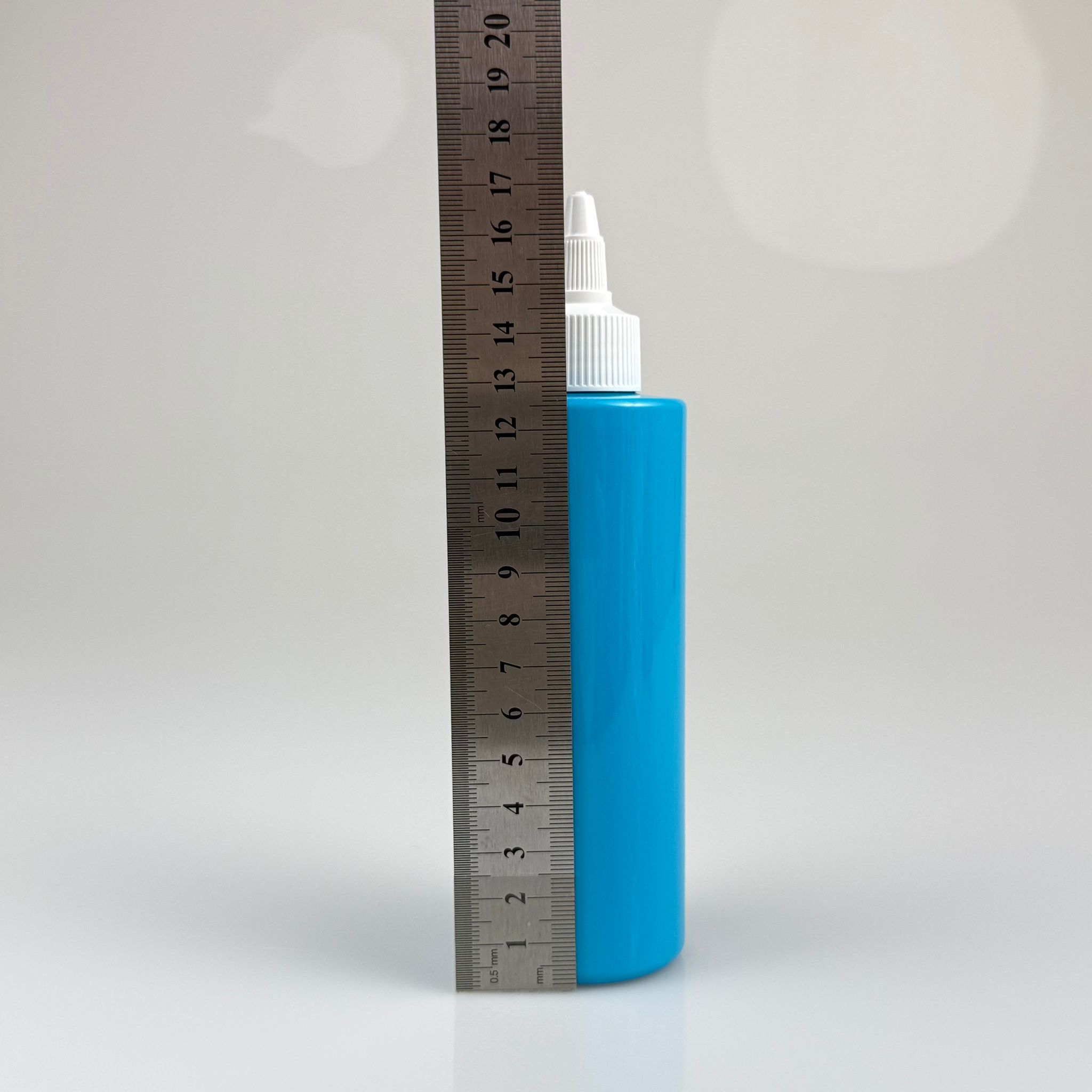 YAĞ, SOS, ACI SOS, SİRKE, SRIRACHA, MÜREKKEP, TUTKAL AKITICI VB BOŞ ŞİŞELERİ - BEYAZ SİVRİ TWİST AKITICI KAPAK + 200 ML MAVİ KÜT SERT PET PLASTİK ŞİŞE TAKIM