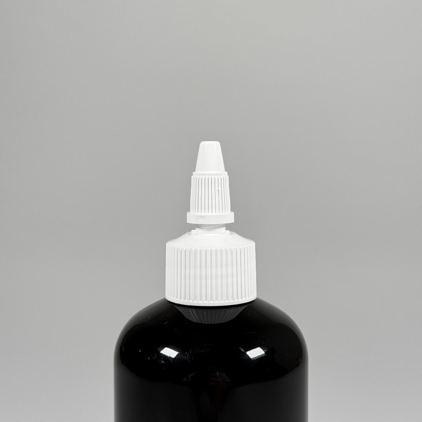 YAĞ, SOS, ACI SOS, SİRKE, SRIRACHA, MÜREKKEP, TUTKAL AKITICI VB BOŞ ŞİŞELERİ - BEYAZ SİVRİ TWİST AKITICI KAPAK + 250 ML SİYAH ZEYNEP PET PLASTİK ŞİŞE TAKIM