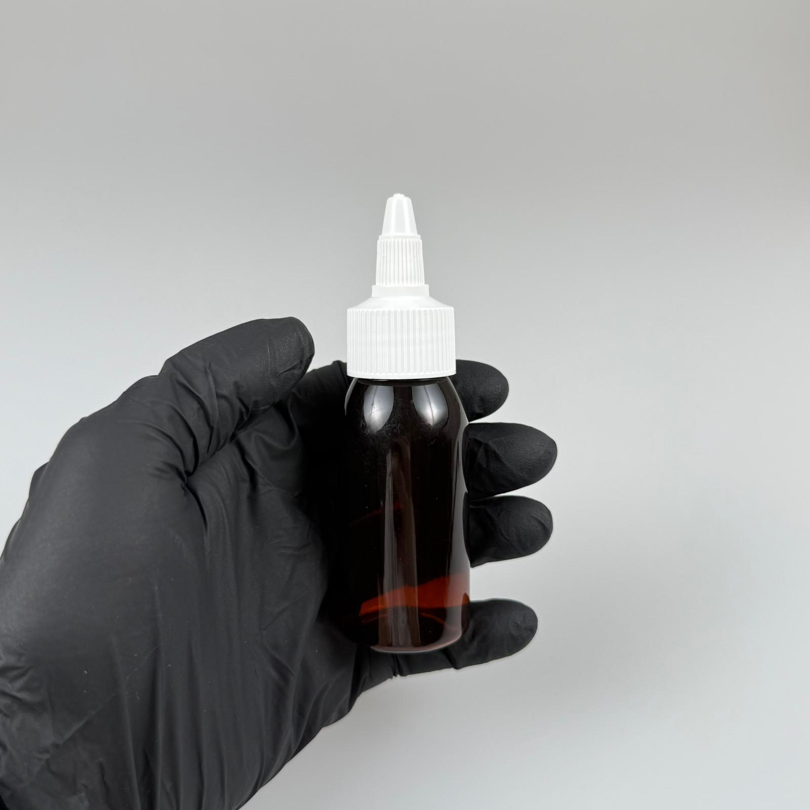 YAĞ, SOS, ACI SOS, SİRKE, SRIRACHA, MÜREKKEP, TUTKAL AKITICI VB BOŞ ŞİŞELERİ - BEYAZ SİVRİ TWİST AKITICI KAPAK + 50 ML AMBER SERT PET PLASTİK ŞİŞE TAKIM