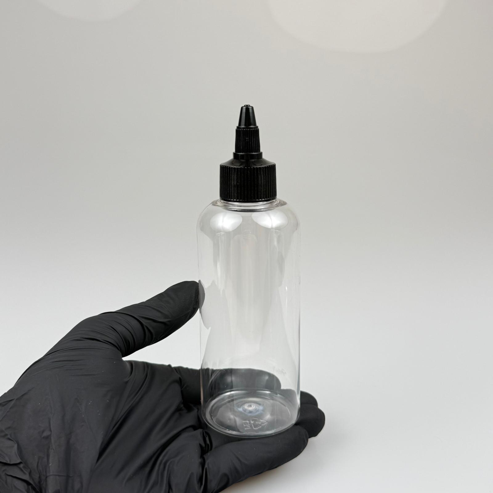 YAĞ, SOS, ACI SOS, SİRKE, SRIRACHA, MÜREKKEP, TUTKAL AKITICI VB BOŞ ŞİŞELERİ - SİYAH SİVRİ TWİST AKITICI KAPAK + 200 ML OVAL PET PLASTİK ŞİŞE TAKIM
