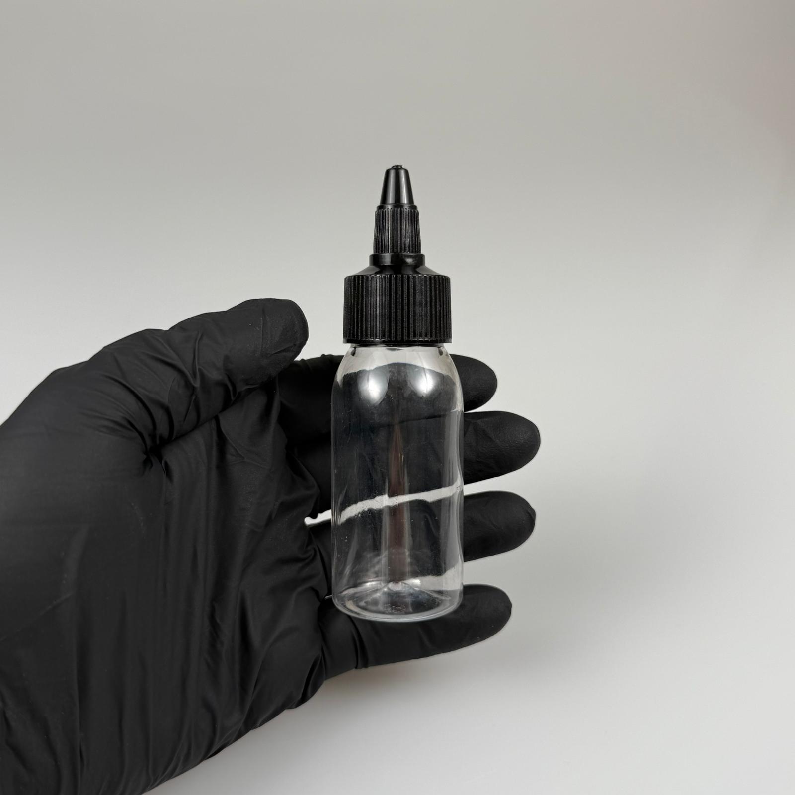 YAĞ, SOS, ACI SOS, SİRKE, SRIRACHA, MÜREKKEP, TUTKAL AKITICI VB BOŞ ŞİŞELERİ - SİYAH SİVRİ TWİST AKITICI KAPAK + 50 ML SERT PET PLASTİK ŞİŞE TAKIM