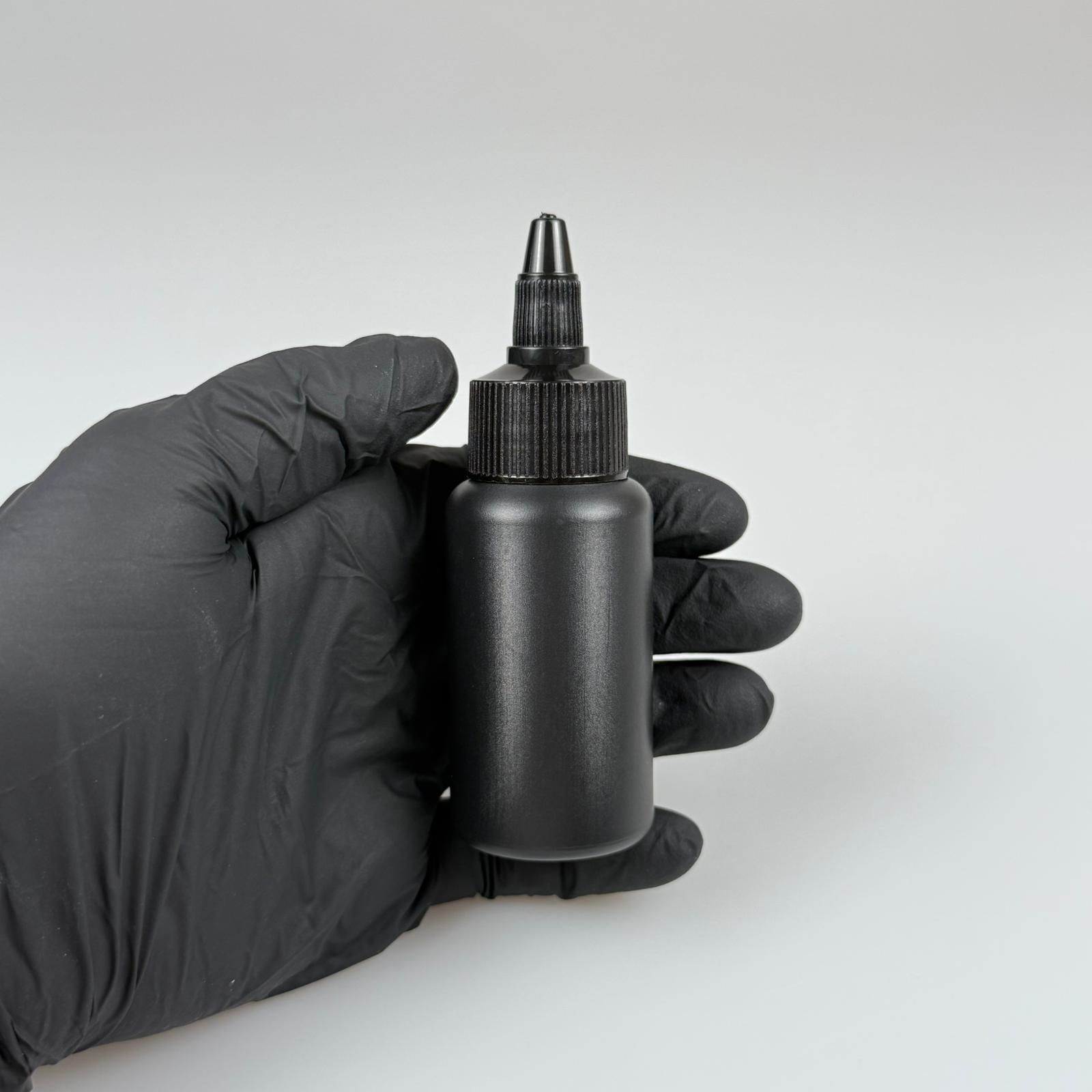 YAĞ, SOS, ACI SOS, SİRKE, SRIRACHA, MÜREKKEP, TUTKAL AKITICI VB BOŞ ŞİŞELERİ - SİYAH SİVRİ TWİST AKITICI KAPAK + 50 ML SİYAH POLİETİLEN PLASTİK ŞİŞE TAKIM